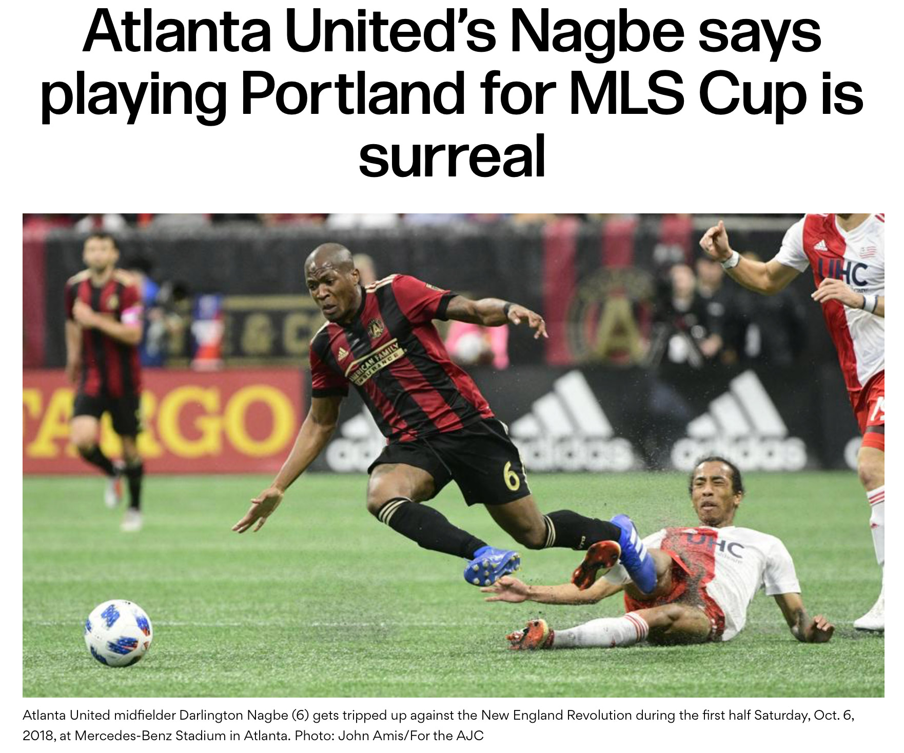 Atlanta United’s Nagbe says playing Portland for MLS Cup is surreal. Read about it in the Atlanta Constitution Journal. It’s a fluff piece, but it has a few interesting tidbits.