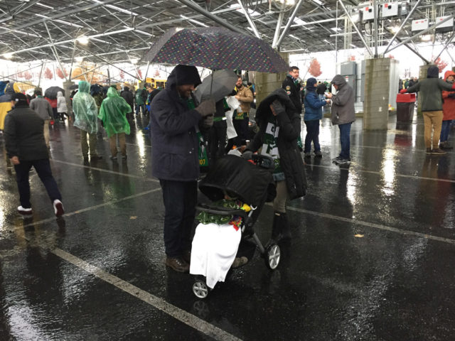 There’s always a little drama though. Originally the TA was offered a meager 900 seat allotment. After making as much of a stink that we could, the allotment was eventually raised to 1300, which combined with Timbers front office allotment for Season Ticket holders and other giveaways eventually raised it to 1,700 officially. Some Timbers supporters were able to purchase seats near the TA section, but only through the corporate scalping sites. They had no chance to buy from the Atlanta front office because their tickets actually went on sale before the final match was decided.  TA allotments sold out online in 4 minutes, btw.  Once at the stadium, there were some snafus that can be laid squarely at the feet of the stadium staff. It was as if this was the first match they had ever put on. ADA seats were not made available, and many supporters came back from concessions or restrooms only to find out their half of the section had been moved elsewhere.  Seriously Atlanta, how hard is it to buy a couple of rolls of yellow tape and print out some paper signs indicating allowed sections? At the very least, take the time to brief your staff BEFORE they start letting people in.  Also annoying, although amusing, was the young woman literally screaming at Timbers supporters to use the escalator as we left instead of the stairs a mere 50 feet away that were apparently reserved for Atlanta Supporters.  Little did she know, one floor below the mixing of the supporters would take place with no incident.