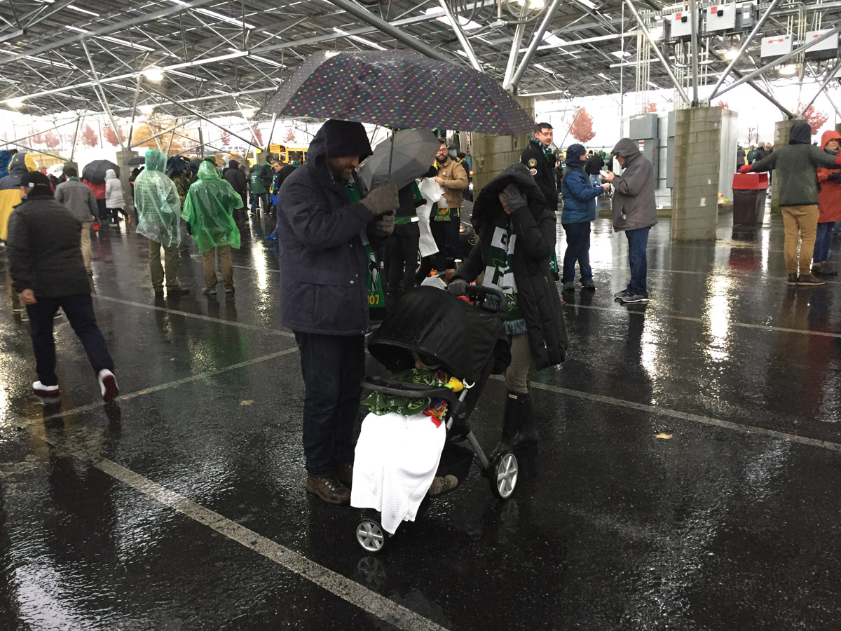 Babies in the rain. True supporters.