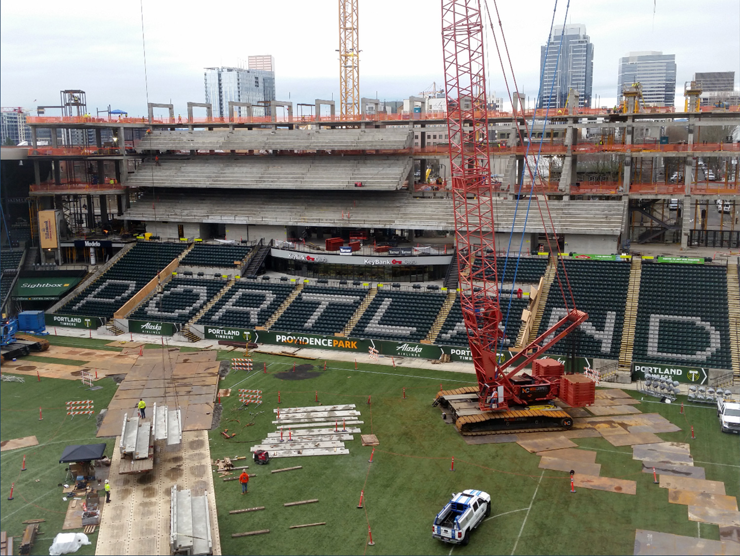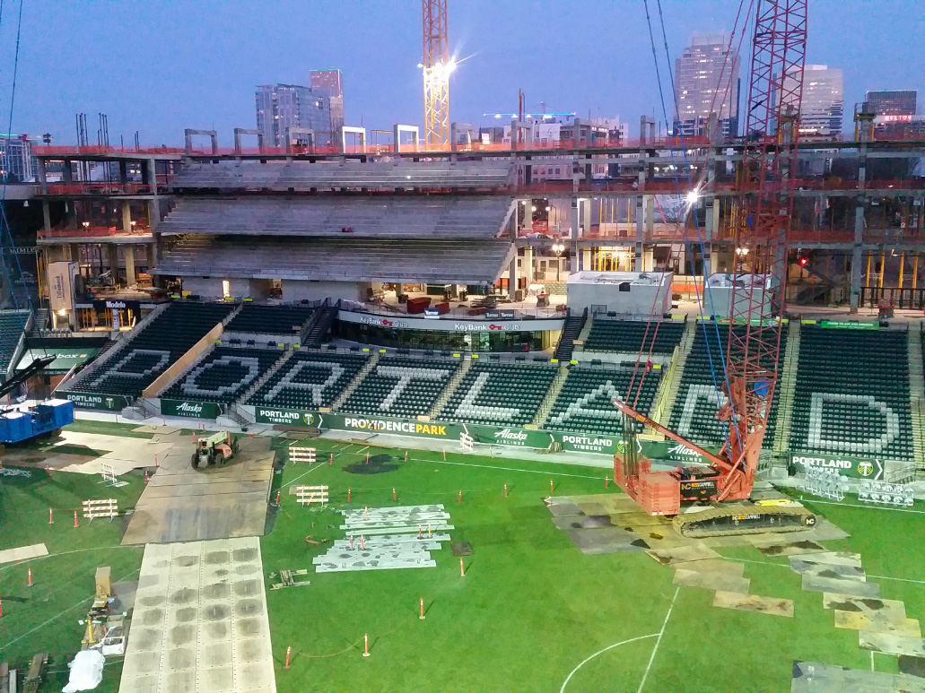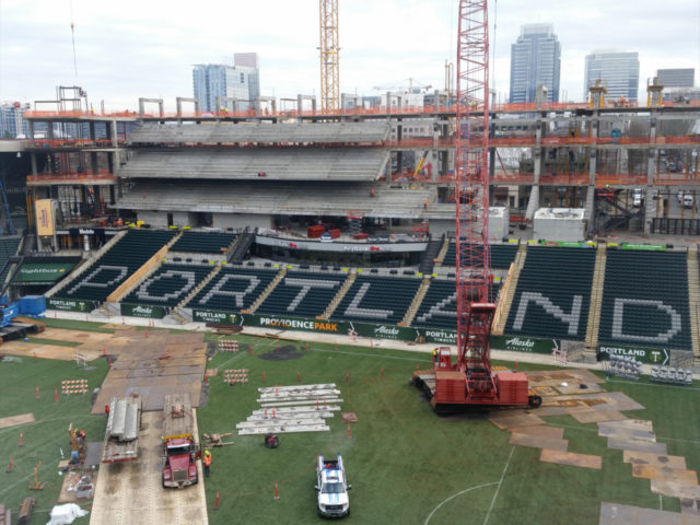 Check out the live construction cam set up at Providence Park. Shots are uploaded every 15 minutes, and there’s a time lapse available. You can also click through previous photos, but so far I haven’t gotten the date picking functionality to work.