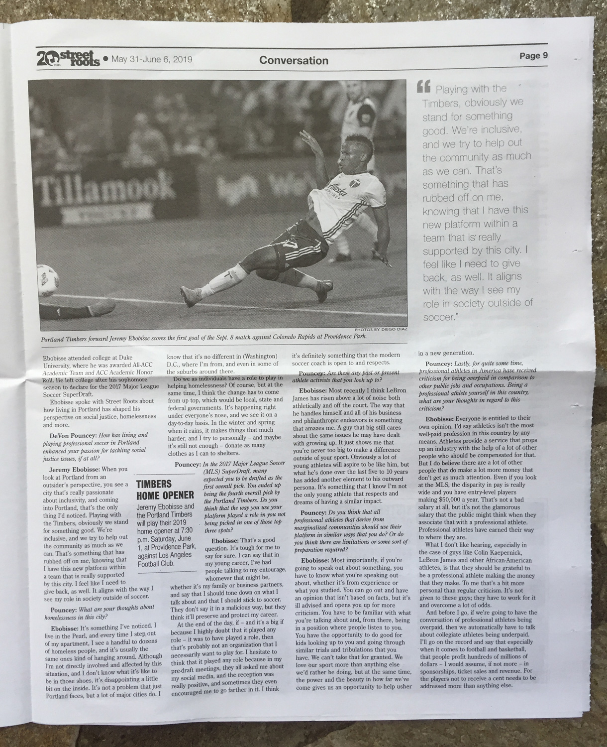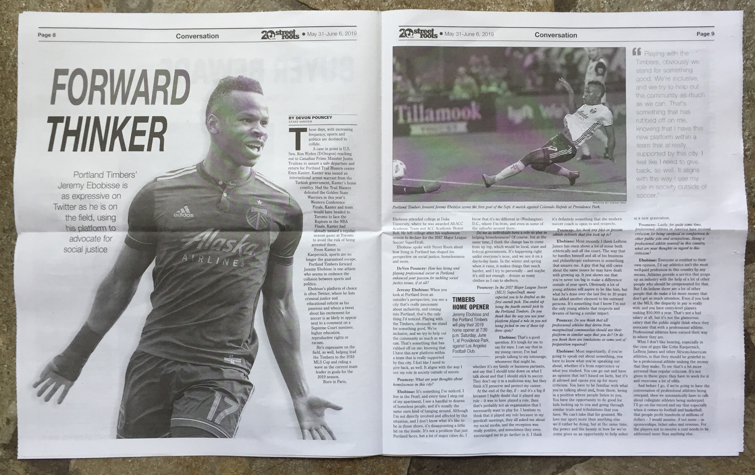 Jeremy Ebobisse made the cover of Street Roots. In the May 3-June 6 issue he’s got a 2 page spread with an interview inside. It’s pretty much the same interview about the intersection of his social activism and soccer career that we’ve seen in other outlets, but it’s still nice to see him getting more exposure.
