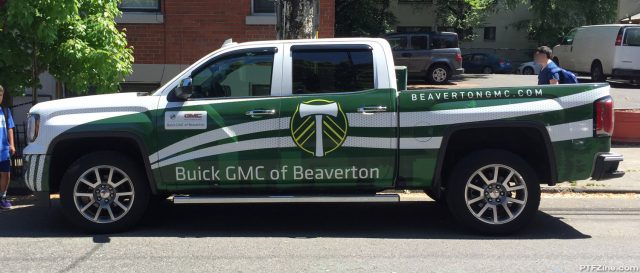 Not sure if this is a truck is driven by the Front Office on loan from Buick GMC of Beaverton or just a straight up sponsorship deal. Is it corny? Yes. Do I like it? Yes.
