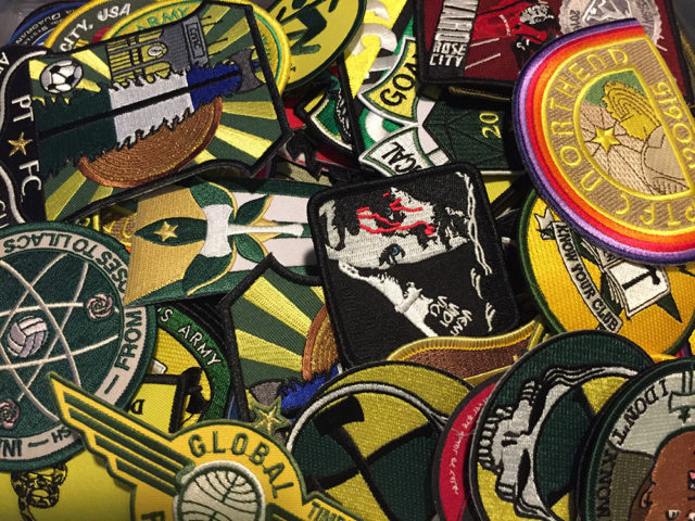 I added a Timbers and Thorns patch gallery to the site. It’s a work in progress. So far, 209 entries, which includes patches designed by the Timbers organization, No Pity Originals, and unaffiliated supporters. There are lot of gaps in the information, but this is a good start. Patch culture, designing and trading is a strong subgroup of the Timbers Army community. Check out the Patch Gallery. You may notice one of the categories is called “Merritt Badges” instead of merit badges. It’s not a typo, rather a reference to owner Merritt Paulson. And just like merit badge you get in a Scouting program, you have torn these too.