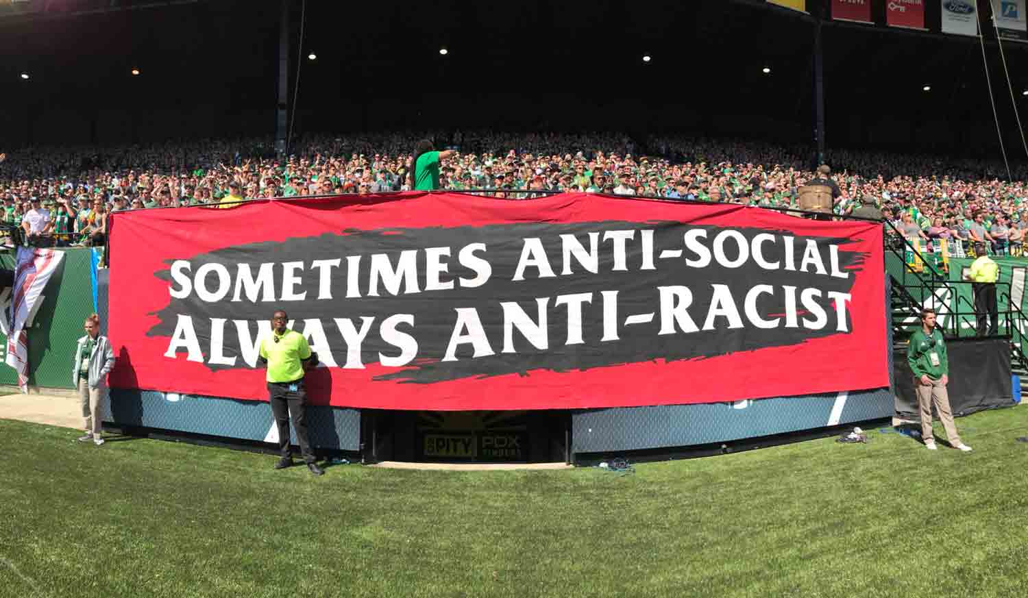 One the one hand, the MLS launched the Don’t Cross the Line anti-discrimination campaign in 2017. On the other hand, Don Garber seems to be more worried about avoiding a potential NFL-stlye backlash from the MAGA hate, (excuse me, I meant hat…) wearing middle America wallets. His wishy-washy response to the infiltration of white supremacist fans in New York City FC supporters groups and the new MLS Code of Conduct that prohibits among other things, any political language or sign seems to be the MLS equivalent of “There were good people on both sides.” Many people inside and outside of the TA have been wondering how this was going to affect tifo displays in Portland, AKA Little Beirut. With a 12 game away streak starting the season, anticipation had been building. The Vancouver Whitecaps had already ejected Seattle Sounders fans displaying an anti-fascist banner in 2017. Interesting now that’s come to light that the Whitecaps have a human-rights issues. There have been reports of people being asked to remove anti-racist and anti-fascist banners this season too. (Citation needed. Do you have one?) What’s that mean for Portland? We regularly fly banners and flags with political messages. The entire fanbase may not agree with them, but they do define a large part of our supporter’s culture, and it would be hard to fathom the Timbers front office rolling over on this. (Sure, insert your derisive snort if you want to…) Well, now we know, according to this release from the Independent Supporter’s Council.