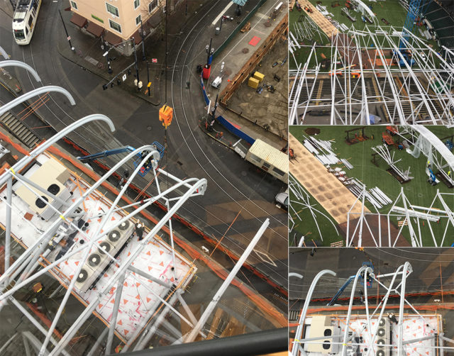 Stadium cam is still out of focus, but here’s a few shots taken from one of the cranes thanks again to Travis Glen Blankenship via Walt Jensen. Or is it Walt Jensen via Travis Glen Blankenship? How does that work? Walt took the pics. Travis sent them to me. In the top left you’ll notice they are adding extensions to some of the trusses that are acreage up.