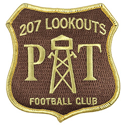 207 Lookouts Football Club Section 207, modeled after Forest Service patches with a fire spotting tower, because they're up high…