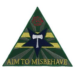 Aim to Misbehave. Based on a logo used in the Firefly tv series.