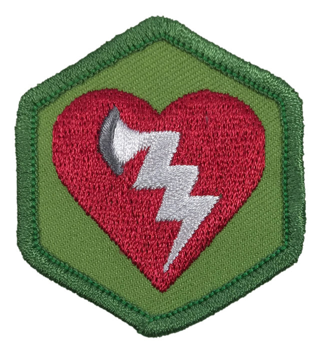 AED Raffle Merritt Badge – July 2015 – Contributors to the AED fundraising raffle got one or two of these. Timbers take on the AED logo. An AED is an Automated External Defibrillator.