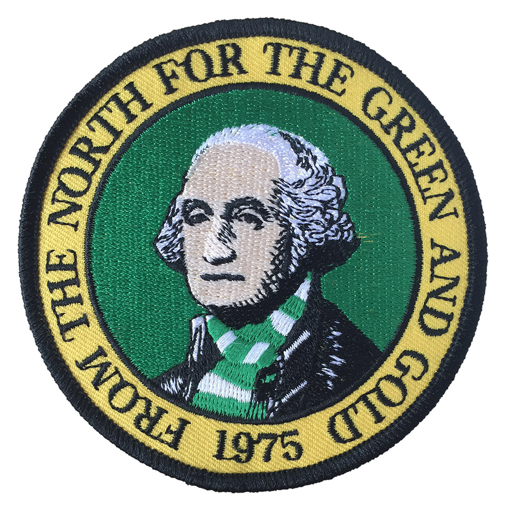 Based on the state seal of Washington this baby is a declaration that the Timbers have heavy support in the former Oregon Territory region known as Washington State and it proclaims that no fishing village scum deserves or earns the cheers of the best fans in MLS. George cannot tell a lie, he is Rose City til he dies.
