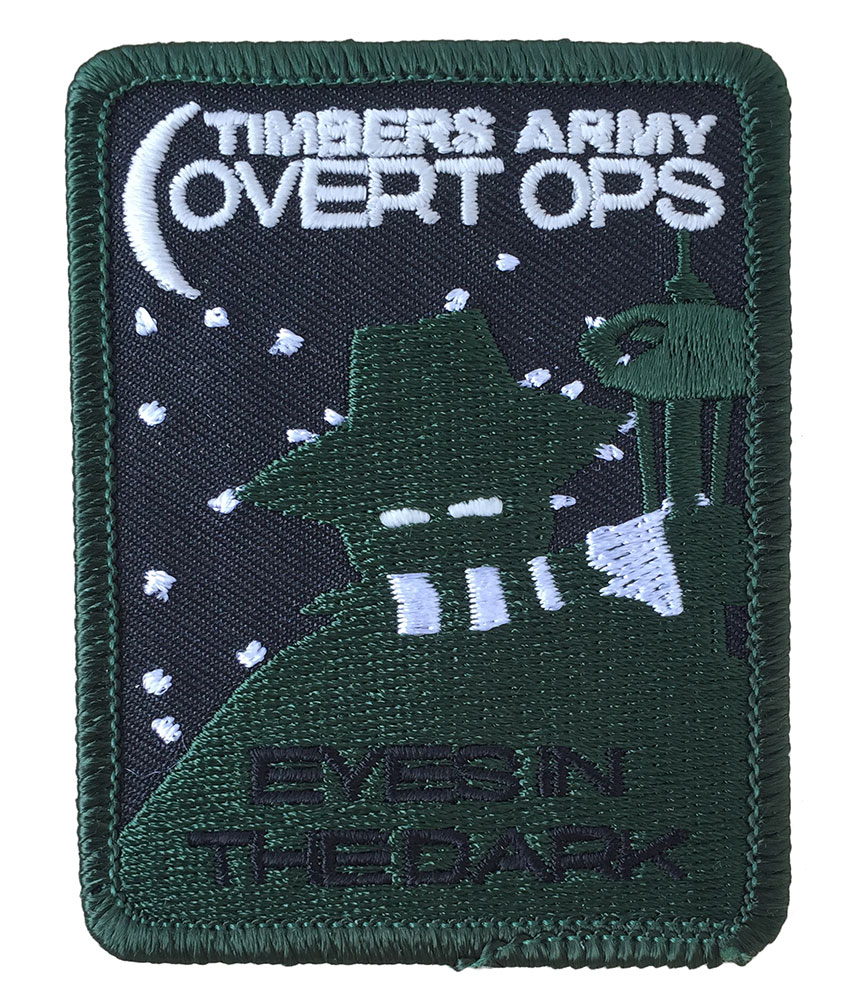 Also came in a version with silver text on the bottom. Glows in the dark. Timbers Army Covert Ops is the Seattle based Timbers supporters group.